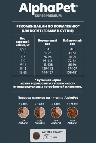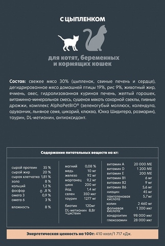 AlphaPet Superpremium / Сухой полнорационный корм с цыпленком для котят, беременных и кормящих кошек