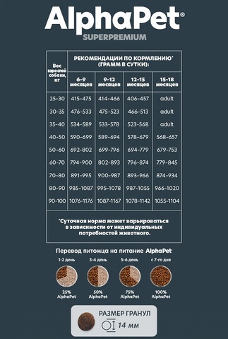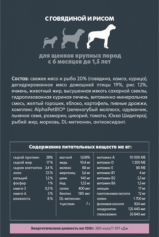 AlphaPet Superpremium / Сухой полнорационный корм с говядиной и рисом для щенков крупных пород с 6 месяцев до 1,5 лет