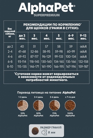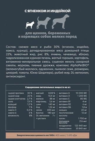 AlphaPet Superpremium / Сухой полнорационный корм с ягненком и индейкой для щенков, беременных и кормящих собак мелких пород