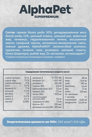 AlphaPet Superpremium MONOPROTEIN / Сухой полнорационный корм из белой рыбы для взрослых собак мелких пород