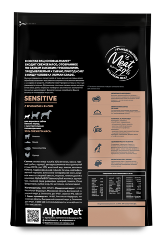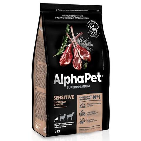 ALPHAPET сухой корм для взрослых собак мелких пород с чувствит пищеварением (ягненок,рис) 3 кг