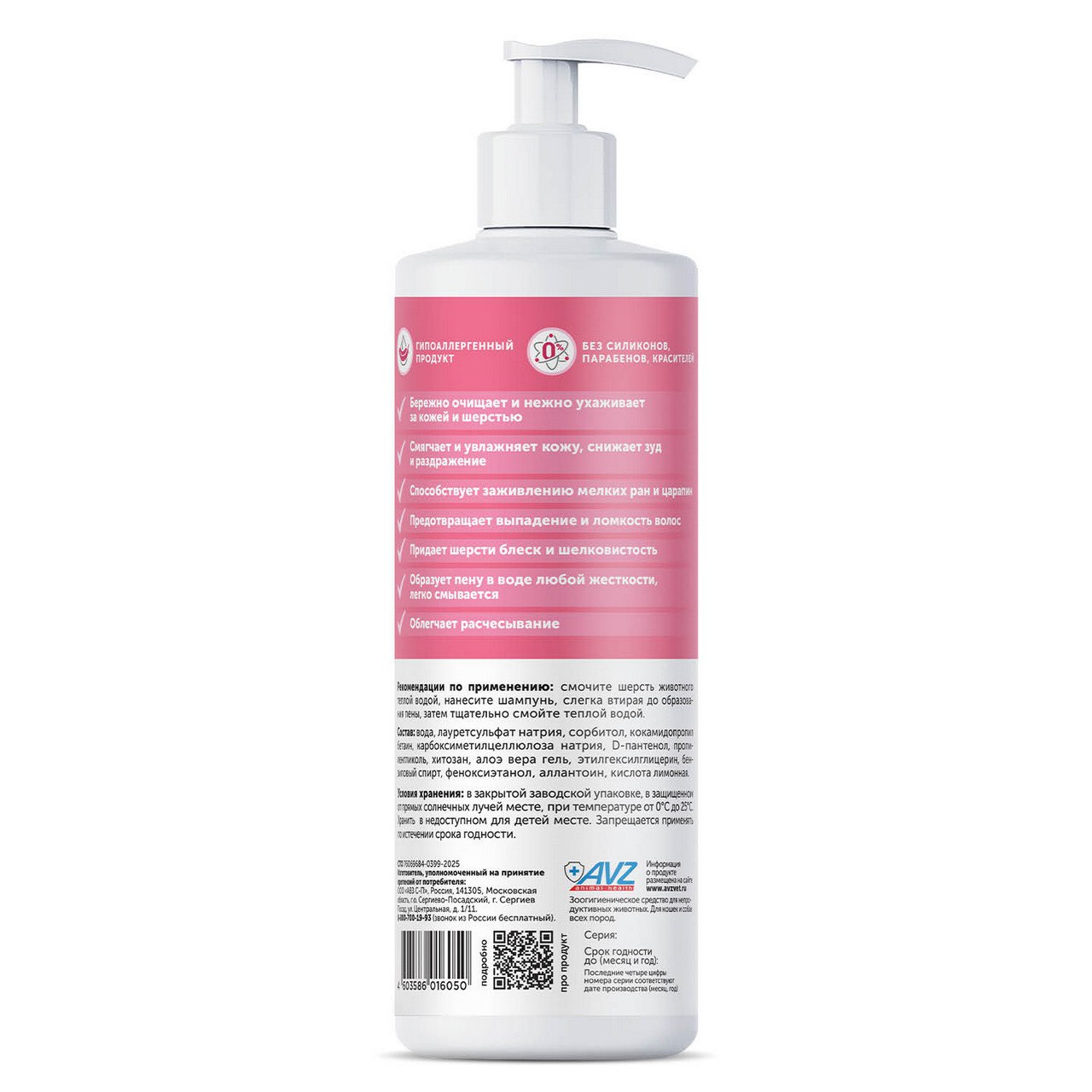 Шампунь гипоаллергенен, не содержит красителей и отдушек, не оказывает раздражающего и чрезмерно обезжиривающего действия на кожу. При попадании на слизистые оболочки вызывает слабое раздражение. Хорошо переносится собаками и кошками разных пород и возрастов.
