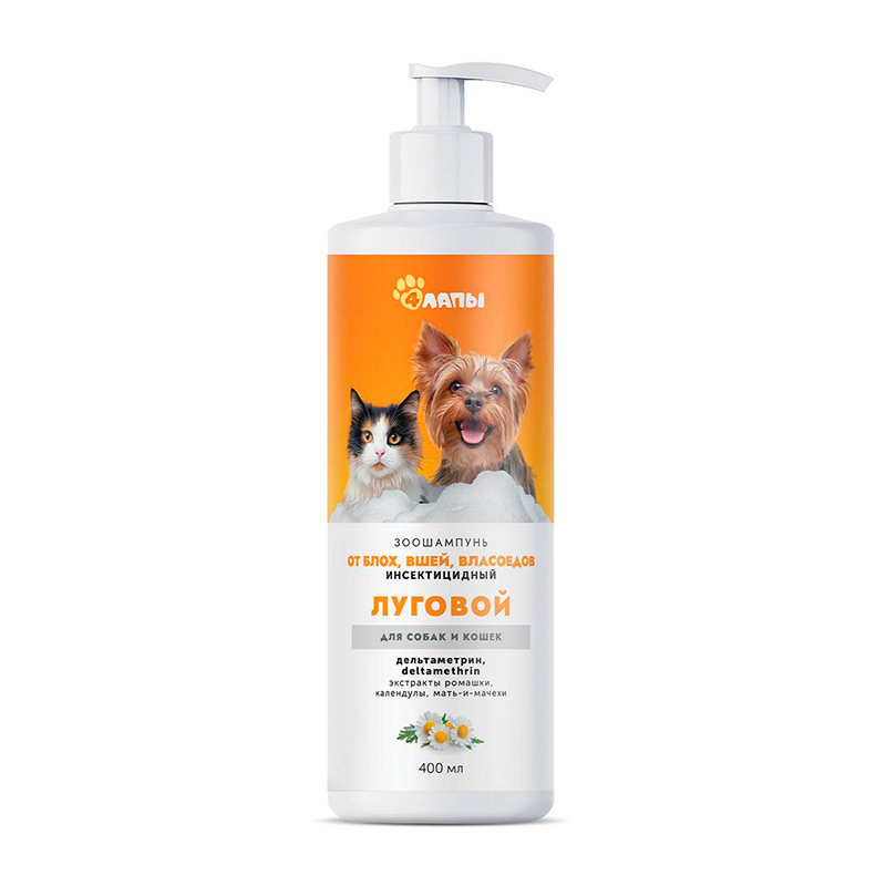 Зоошампунь инсектицидный «Луговой» применяют для обработки собак и кошек при энтомозах вызванных блохами, вшами и власоедами.