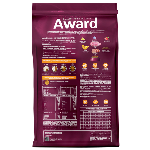 Сухой корм AWARD для щенков от 1 месяца крупных пород с курицей и индейкой с добавлением тыквы и шиповника 2 кг.