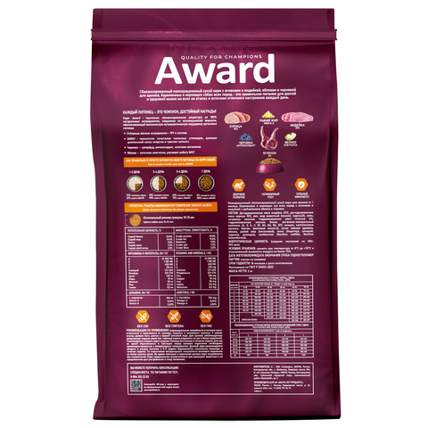 Сухой корм AWARD для щенков от 1 месяца, беременных и кормящих сук всех пород с ягненком и индейкой с добавлением яблока и черники 2 кг.