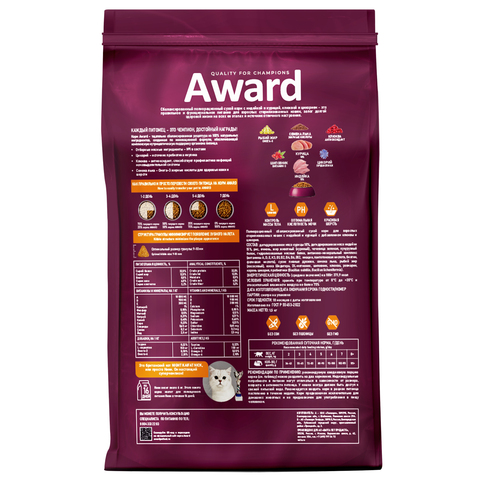 Сухой корм AWARD Sterilized для взрослых стерилизованных кошек с индейкой и курицей с добавлением клюквы и цикория 1,5 кг.