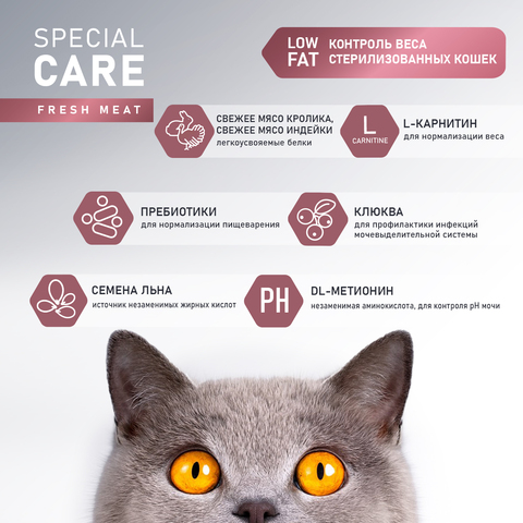 балансированный полнорационный сухой корм со свежим мясом кролика с добавлением расторопши и клюквы - это функциональное питание для стерилизованных кошек, которое поддерживает идеальный вес питомца благодаря сниженному содержанию жира и источникам биологически активных веществ в составе, обеспечивая комплексную заботу о здоровье вашего питомца на долгие годы.