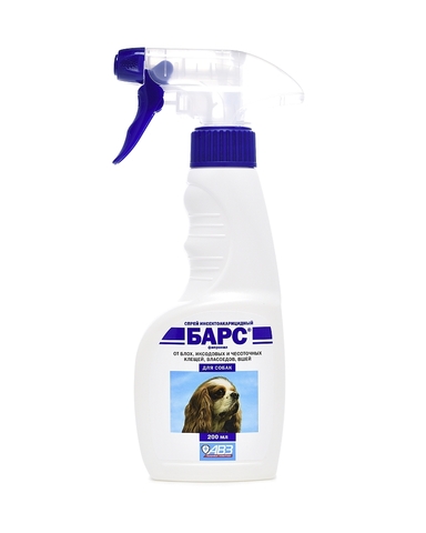 БАРС® спрей инсектоакарицидный применяют для защиты собак, кошек, хорьков, шиншилл, морских свинок, крыс и хомяков от эктопаразитов, а также для лечения и профилактики заболеваний вызываемых блохами (афаниптероз), вшами (линогнатоз, триходектоз), чесоточными (саркоптоз, нотоэдроз, отодектоз) и тромбидиформными (хейлетиеллез) клещами, при поражении иксодовыми клещами, в комплексной терапии демодекоза и аллергического дерматита, вызываемого укусами блох, а также в целях защиты животных от нападения двукрьшых кровососущих насекомых.