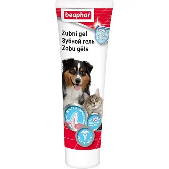 Зубной гель обеспечивает ежедневную защиту зубов собак и кошек и освежает дыхание. Ферменты в составе зубного геля предотвращают образование зубного налета и зубного камня путем разрушения остатков пищи в ротовой полости. Фермент глюкозоксидаза разрушает глюкозу, а протеаза и амилоглюкозидаза — белковые остатки пищи на зубах. Действие прополиса основано на дезинфекции, обезболивании, пломбировании микротрещин на эмали зубов. Хлоргексидин уничтожает патогенные бактерии и препятствует образованию зубных отложений. Вкус печени делает применение зубного геля более приятным для животного.