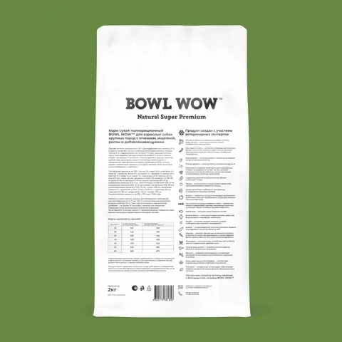 Полнорационный корм BOWL WOW с ягненком, индейкой, рисом и цукини — это формула со свежим бескостным мясом и полезными субпродуктами. Она разработана специально для собак крупных пород (от 25 кг) и содержит полноценный аминокислотный профиль, необходимый вашему питомцу. Помимо сбалансированных белков, жиров, углеводов, витаминов и микроэлементов, в состав входят комплексы поддержки чувствительного пищеварения и иммунной системы. Размер гранул 17–19 мм идеально подходит для взрослых собак крупных пород.