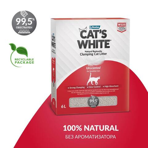 CAT’S WHITE® NATURAL UNSCENTED – это наполнитель из белой бентонитовой глины для кошачьего туалета без ароматизатора.