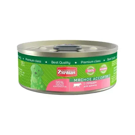 Консервы Четвероногий Гурман МЯСНОЕ АССОРТИ выпускаются уже более 10 лет, и спрос на них только растёт. Это корм, в составе которого содержится 95% мясных компонентов исключительно высшего качества.