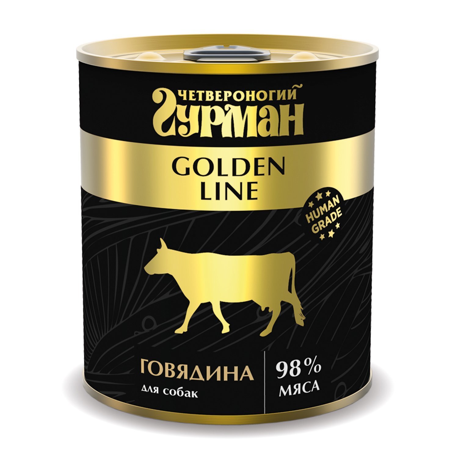 Golden line для собак - это корм суперпремиум класса, приготовленный из одного вида мяса без добавления субпродуктов и растительных компонентов. Открыв баночку, вы увидите крупно нарезанное сочное филе. Golden line для собак – это 98% настоящего мяса, приготовленного в ароматном желе. Основные преимущества: 98% мяса сырьё категории Human Grade 100% натуральный продукт Характеристики: Состав: говядина, вода, желирующая добавка, соль. Питательная ценность в 100 г продукта: протеин — 12 г, жир — 10 г, клетчатка — 0,5 г, зола — 2 г, влага — 82 г. Минеральные вещества (в 100 г продукта): P – 0,4 г, Ca – 0,3 г. Энергетическая ценность: 138 ккал. Суточная норма: 70 - 90 г на 1 кг веса животного. Суточную норму разделить на два приема кормления. Употреблять при комнатной температуре. Срок годности: 3 года при температуре от 0°С до 25°С и относительной влажности воздуха не более 75%. Открытую банку хранить в холодильнике не более двух суток.