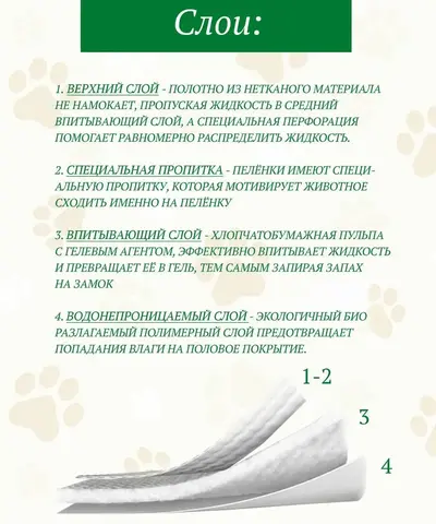 Одноразовые впитывающие пеленки для животных торговой марки Чистый хвост, созданы из натуральных материалов.