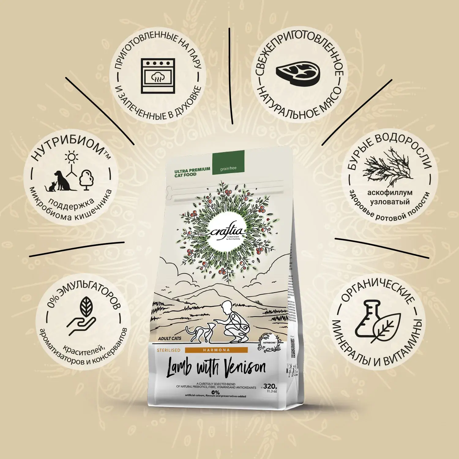 CRAFTIA HARMONA сухой корм для стерилизованных кошек из ягненка и оленины 320 гр