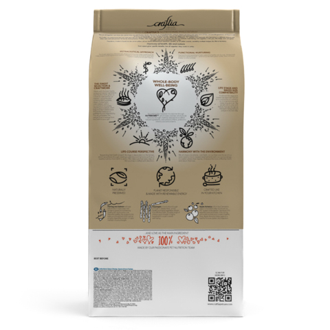 Состав кормов CRAFTIA прозрачен и понятен, отсутствуют скрытые добавки и сомнительные ингредиенты. Все, что заявлено в составе корма, гарантированно присутствует в каждой грануле. Собственный завод, сотни квадратных метров научно-исследовательских лабораторий, первоклассное сырье — все это позволяет создавать тщательно сбалансированный высокобелковый корм корм с холистическим подходом. Все компоненты корма подходят для употребления человеком и не содержат ГМО.