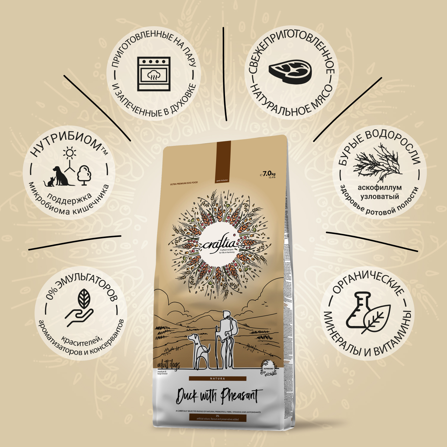 CRAFTIA NATURA — корм для собак ультрапремиум класса, созданный с любовью к природе.