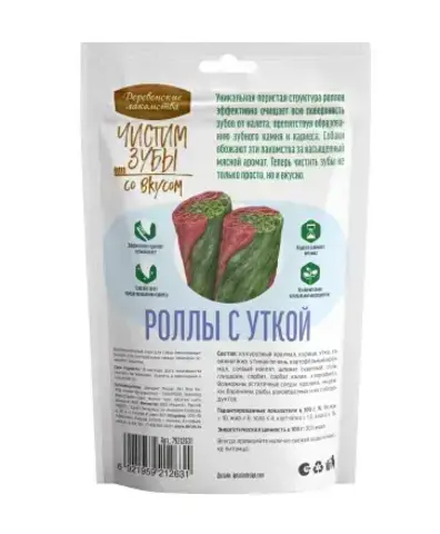Уникальная пористая структура роллов эффективно очищает всю поверхность зубов от налёта, препятствуя образованию зубного камня и кариеса. Собаки обожают эти лакомства за насыщенный мясной аромат.