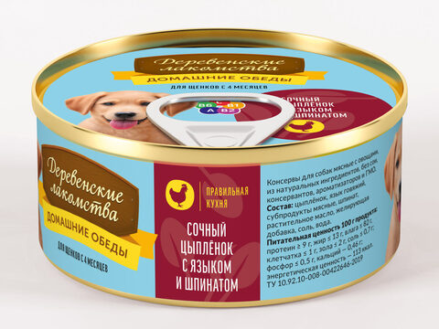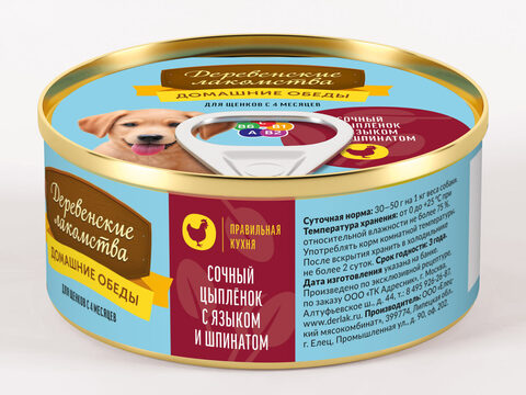 Вот так можно сделать полезное вкусным! Комбинация сочного цыплёнка и говяжьего языка поможет незаметно проглотить и полезный шпинат. С такими обедами ваш щенок вырастет здоровым и крепким.