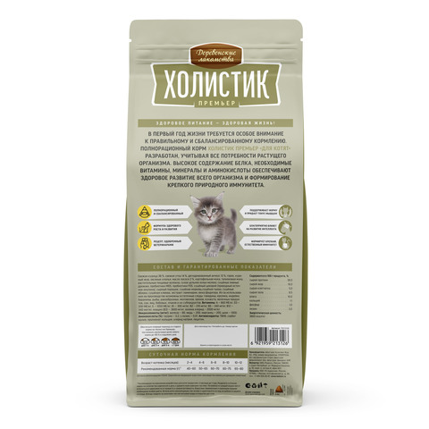 Первый год жизни требует особого внимания к правильному и сбалансированному кормлению. Полнорационный корм Холистик Премьер «Для котят» разработан учитывая все потребности растущего организма. Высокое содержание белка, необходимые витамины, минералы и аминокислоты обеспечивают здоровое развитие всего организма и формирование крепкого природного иммунитета