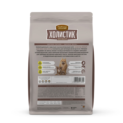 Сбалансированный, натуральный, полнорационный корм «Деревенские лакомства Холистик Премьер» обеспечивает питомцев всем необходимым для поддержания здоровья на каждом этапе жизни. Уникальные рецепты учитывают не только вкусовые предпочтения собак, но и их физиологические особенности, уровень активности и возраст.