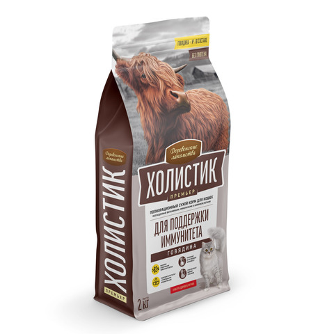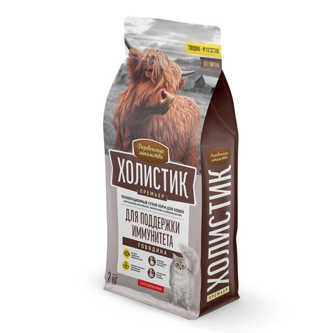 Деревенские лакомства "Холистик" сухой корм кошек для поддержки иммунитета (говядина) 2 кг