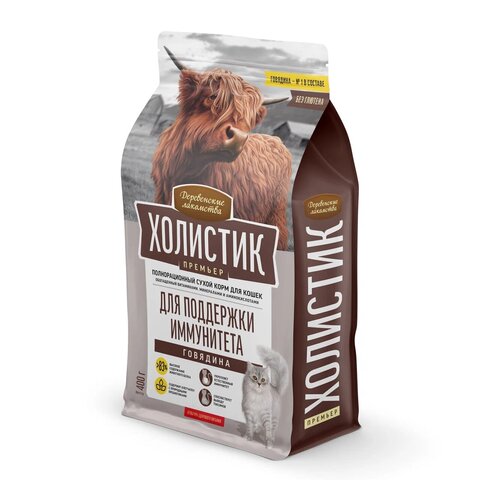 Деревенские лакомства "Холистик" сухой корм кошек для поддержки иммунитета (говядина) 400 гр