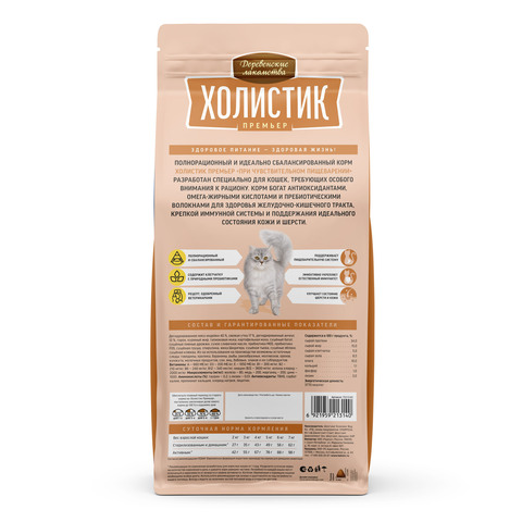 Полнорационный и идеально сбалансированный корм Холистик Премьер «При чувствительном пищеварении» разработан специально для кошек, требующих особого внимания к рациону. Корм богат антиоксидантами, омега-жирными кислотами и пребиотическими волокнами для здоровья желудочно-кишечного тракта, крепкой иммунной системы и поддержания идеального состояния кожи и шерсти.