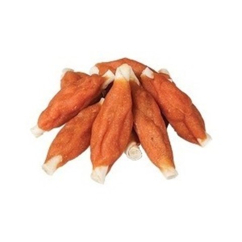 Лакомство для щенков. Жевательная палочка, плотно покрытая куриным мясом, позволит вашему щенку насладиться замечательным вкусом курицы, а также почесать свои зубки Состав: куриное мясо, сыромятная говяжья кожа Анализ: белок — 51,90 г, жир — 3,08 г, влага — 16,08 г, клетчатка — 0,10 г, зола — 2,97 г Энергетическая ценность: 235,32 ккал Информация с сайта производителя