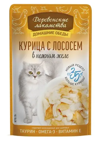 Сочетание нежного мяса курицы с благородным лососем даёт неповторимое сочетание вкуса и аромата и придётся по вкусу даже самым взыскательным гурманам. Хорошее настроение для игр — гарантировано! Дополнительный (неполнорационный) корм для кошек.