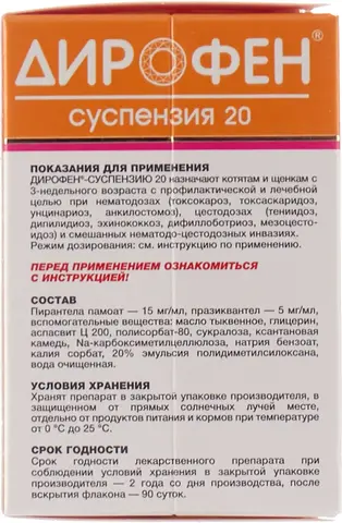 пирантела памоат — 15 мг/мл, празиквантел — 5 мг/мл, масло тыквы, вспомогательные вещества до 1 мл.