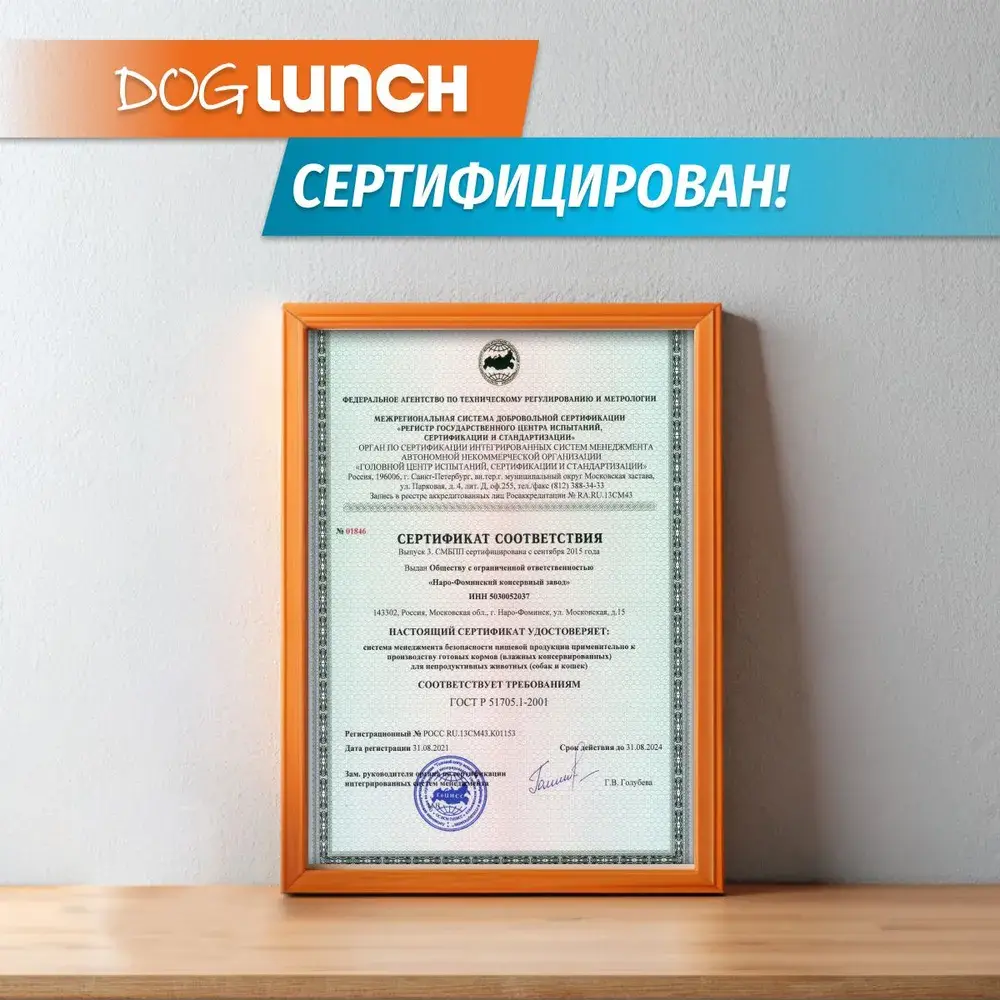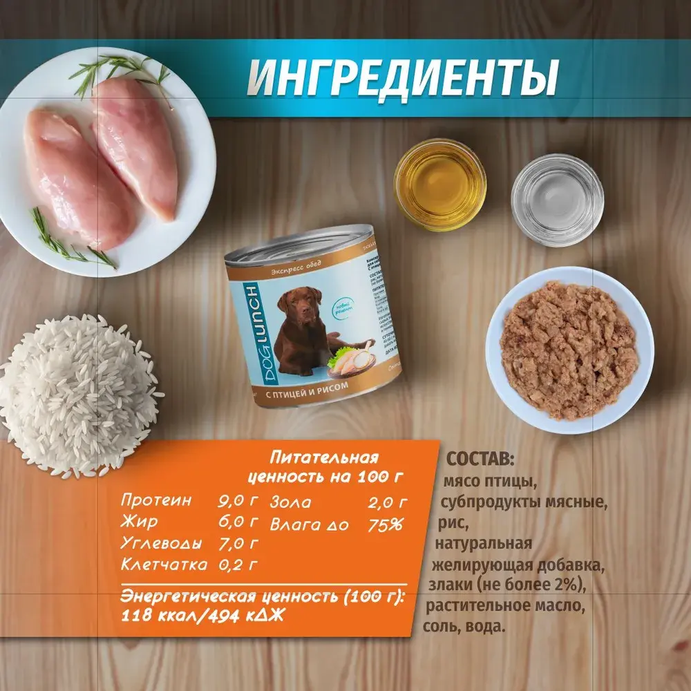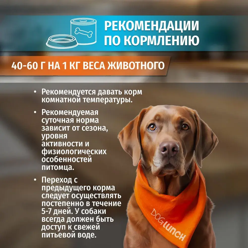 Изготовлено из качественного российского сырья. Не содержит сои, консервантов, искусственных красителей, ароматизаторов и генномодифицированных ингредиентов. Срок годности 3 года при температуре от 0°С до +25°С и относительной влажности не более 75%. Открытую банку хранить в холодильнике не более 2-х суток. 42 - 60 г на 1 кг веса животного. Рекомендуется давать корм комнатной температуры.