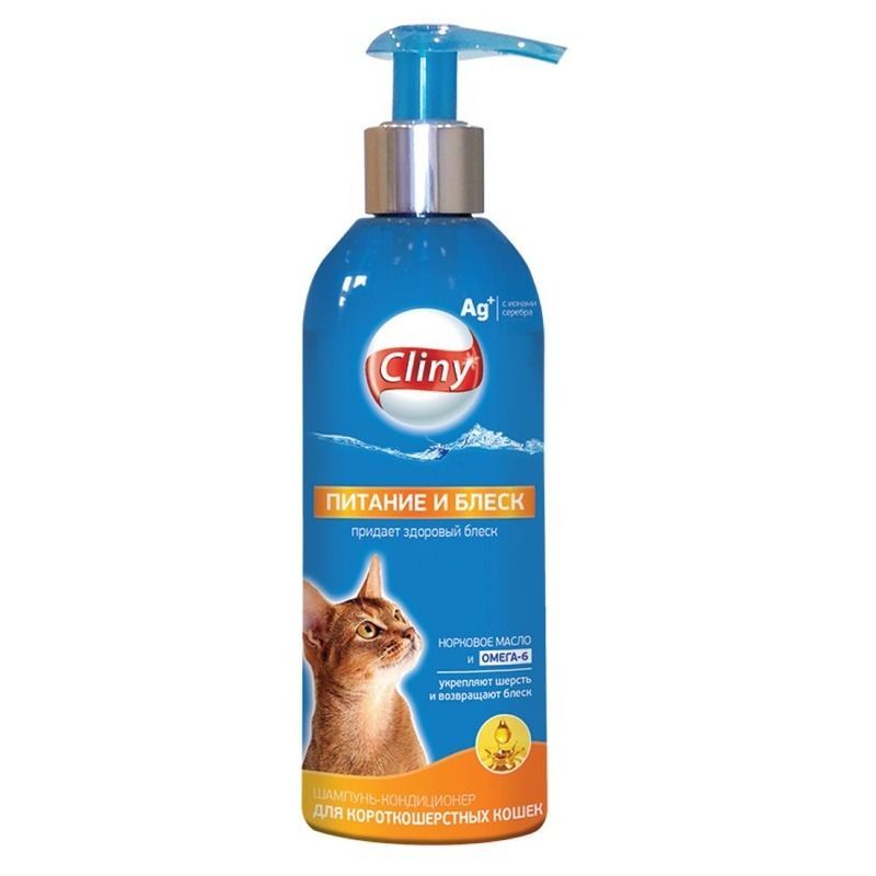 Шампунь-кондиционер Cliny Питание и блеск разработан специально для короткошёрстных кошек:
