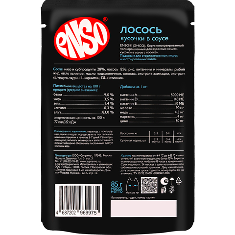 ENSO® c лососем для взрослых и стерилизованных кошек обогащен всеми необходимыми добавками для поддержания организма: