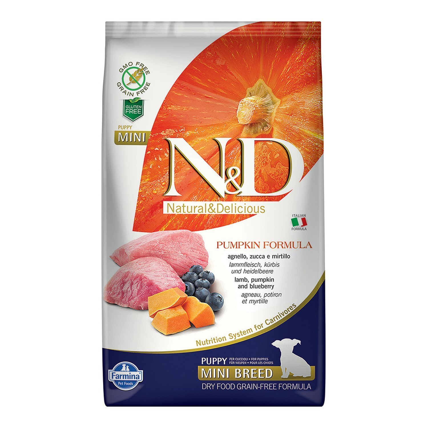Ягненок, тыква и черника. Полнорационный беззерновой сухой корм для щенков, беременных и кормящих сук. Ингредиенты: свежее мясо ягненка без костей (24%), дегидратированное мясо ягненка (24%), гороховый крахмал, куриный жир, дегидратированная сельдь , сушеная тыква (5%), свежая сельдь, дегидратированные цельные яйца, рыбий жир (сельди), волокна гороха, сушеная морковь, сушеная люцерна, куриные хрящи (источник глюкозамина и хондроитин сульфата), инулин, фруктоолигосахариды, дрожжевой экстракт (источник маннанолигосахаридов), сушеная черника (0,5%), сушеный шпинат, подорожник (0,3%), сушеные яблоки, дегидратированный сладкий апельсин (0,5%), сушеный гранат, хлориднатрия, сухие пивные дрожжи, корень куркумы (0,2%). Пищевые Добавки на 1 кг: ВитаминА– 16000МЕ; ВитаминD3 – 1600МЕ; ВитаминЕ– 600мг; ВитаминС – 160мг; Ниацин – 40мг; Пантотеноваякислота– 16мг; ВитаминВ2 – 8мг; ВитаминВ6 - 6,4мг; ВитаминВ1 - 4,8мг; ВитаминН- 0,40мг; Фолиеваякислота - 0,48мг; ВитаминВ12 - 0,1мг; Холина хлорид– 2800мг; Бета-каротин- 1,5мг; Хелат цинка аналогичный метионин гидроксилазе – 910 мг; Хелат марганца аналогичный метионин гидроксилазе – 380 мг; Хелат железа гидрата глицина - 250 мг; Хелат меди аналогичный метионин гидроксилазе – 88 мг; Инактивированные дрожжи – 0,40 мг;DL-метионин– 6000мг; Таурин– 1000мг; L-карнитин– 300мг. Специальные добавки: экстракт алоэвера – 1000мг; экстрактзеленогочая – 100мг; экстрактрозмарина. Антиоксиданты: экстракттокофероловнатуральногопроисхождения. Питательные вещества: сыройбелок - 35,00%; сыройжиримасла - 20,00%; сыраяклетчатка - 1,90%; влага – 9,00%; сыраязола - 8,10%; кальций- 1,30%; фосфор- 0,90%; Омега‐6 - 3,40%; Омега‐3 - 0,90%; докозагексаеновая кислота (DHA) - 0,50%; эйкозапентаеновая кислота (EPA) - 0,30%; глюкозамин– 1400мг/кг; хондроитин сульфат – 1100мг/кг. Рекомендации по применению. Нормы кормления указаны в таблице на упаковке. При переводе на N&D рекомендуется постепенно замещать предыдущий корм на новый. Для сук в течение последних двух недель беременности и в период лактации рекомендовано кормление вволю. Хранить в прохладном, сухом месте, в закрытой упаковке. Произведено за 18 месяцев до окончания срока годности, указанного на упаковке. Производится из ингредиентов преимущественно из Италии, Дании и Франции. Масса нетто, срок годности, номер партии и регистрационный номер завода указаны на упаковке.