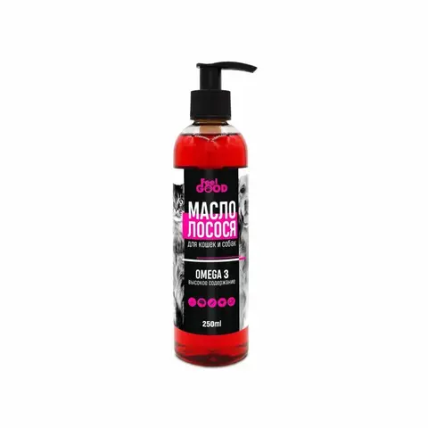 Лакомство масло лосося FeelGOOD - это 100% масло атлантического лосося холодного отжима. Масло лососевое для собак и кошек имеет высокое содержание незаменимых для здоровья животного жирных кислот Омега-3.