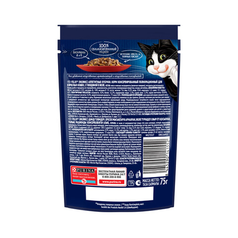 Эксперты Purina, разрабатывая влажные корма для домашних любимцев, создали корм для взрослых кошек Felix «Аппетитные кусочки» — специально для Вашего любителя вкуснятины. Влажный корм для кошек Felix Аппетитные кусочки — полнорационный, содержит все необходимое для здоровой активной долгой жизни.