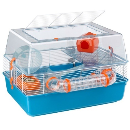 Клетка для комфортного содержания мелких грызунов - хомячков или декоративных мышей. Она сделана в классическом дизайне, а конструкция очень надежна. Поддон, крышка и металлическая решетка имеют надежное соединение, которое сможете открыть только вы. Прутья решетки имеют частый шаг, что не даст питомцу выбраться самостоятельно за пределы клетки. Представленная модель принадлежит к модульным конструкциям, как и многие клетки для грызунов, выпускаемые компанией Ferplast. С помощью специальных приспособлений и тоннелей из прозрачного пластика можно расширять внутреннее пространство клетки.