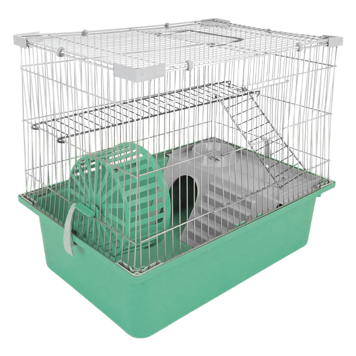 Одноэтажная клетка прямоугольной формы - удобный и функциональный дом для любого грызуна: он занимает совсем немного места и отлично подходит для мелких домашних животных вроде крыс, мышей и хомяков. В комплектацию изделия также входят: пластиковый домик с миской и беговое колесо. Кроме того, клетка оборудована удобной ручкой на крыше, облегчающей процесс переноски изделия, и специальным пластиковым наружным поддоном, облегчающим процесс уборки. Размер изделия: 420х300х400мм.