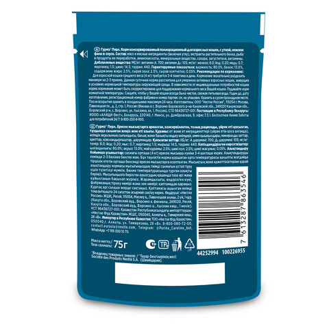 Gourmet Перл консервы для взрослых кошек с утка в соусе 75 г
