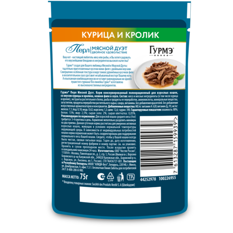 Корм для взрослых кошек «Перл Мясной Дуэт» — это нежные ломтики мини-филе с изысканными комбинациями мясных вкусов курицы и кролика в роскошном соусе. Корм для кошек от Гурмэ® полнорационный, содержит все необходимые для здоровья микронутриенты. Влажный корм с богатой вкусовой палитрой не оставит равнодушным Вашего взыскательного гурмана.