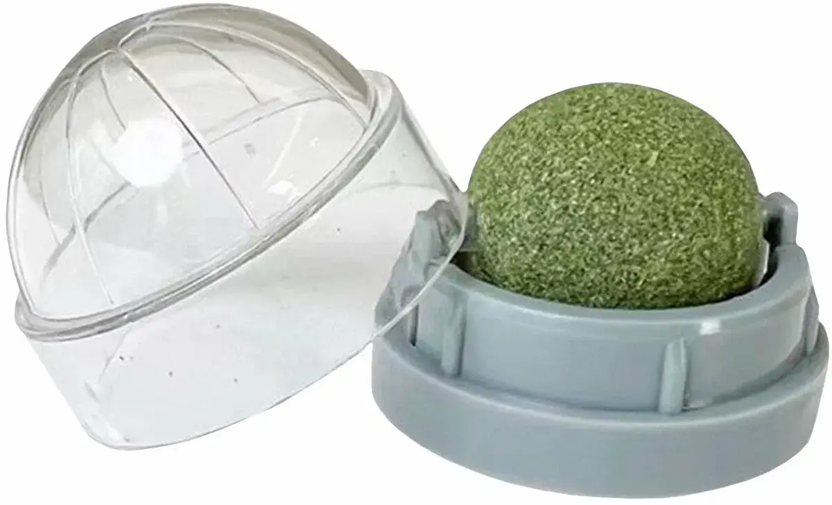 Это угощение, состоит из натуральной спрессованной мяты. Такой шарик считается природной сладостью для котов, кошек и котят. Когда кошки и коты слышат запах активного вещества кошачьей мяты, они становятся более живыми, игривыми, начинают охотиться за мелкими предметами.