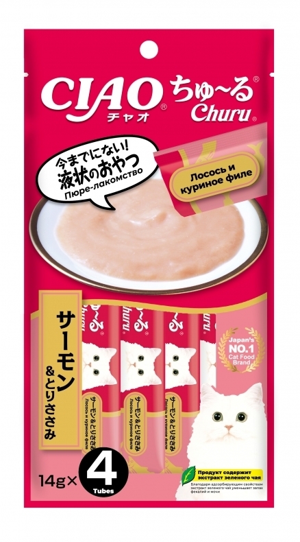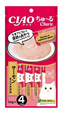 Суперпремиальное лакомство-пюре на основе нежного филе фермерской курицы с добавлением лосося Ciao Churu от японского производителя Inaba изготовлено исключительно из натуральных ингредиентов и отличается высоким процентом влажности, благодаря чему поддерживается водный баланс организма кошки.