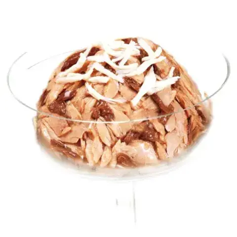 Ингредиенты: тунец Кацуо, тунец Магуро, куриное филе, крахмал, экстракт тунца Кацуо, агар-агар, загуститель, экстракт зеленого чая, краситель (красный ферментированный рис)