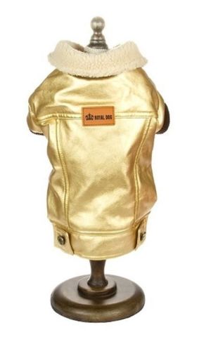 Куртка для мелких пород собак, кожзам, искусственный мех, золотой L