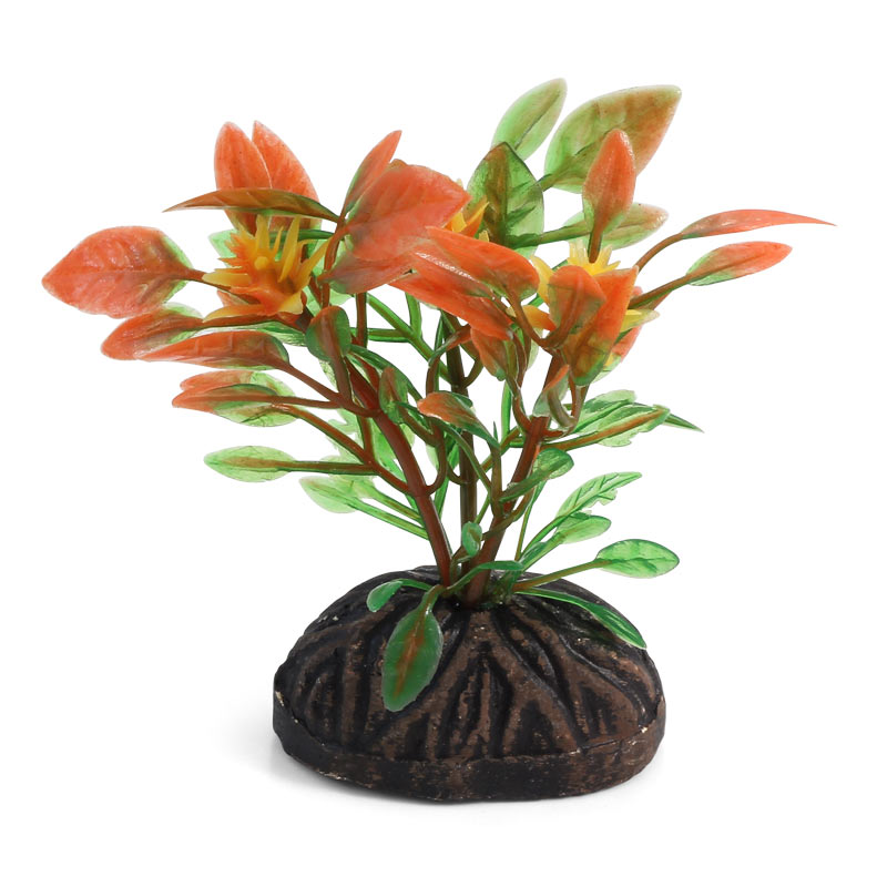 Растения - это не только завершающий штрих в оформлении, но и необходимый атрибут любого аквариума. Они придают трехмерность внутреннему пространству аквариума, а также служат дополнительным укрытием для небольших рыб, отвечая тем самым не только за эстетику, но и принося обитателям аквариума реальную пользу. Неоспоримое преимущество искусственных растений в том, что в них не заводятся паразиты и грибки, их легко мыть и дезинфицировать, и прослужат они неизмеримо дольше, чем живые растения. Изготовленное из нетоксичного пластика, растение "Людвигия" для аквариума с тяжелой керамической подставкой подойдет для оформления переднего плана любых типов пресноводных аквариумов.