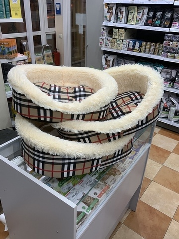 Лежак для животных, плюш, кремовый в клетку (ш45, д55)