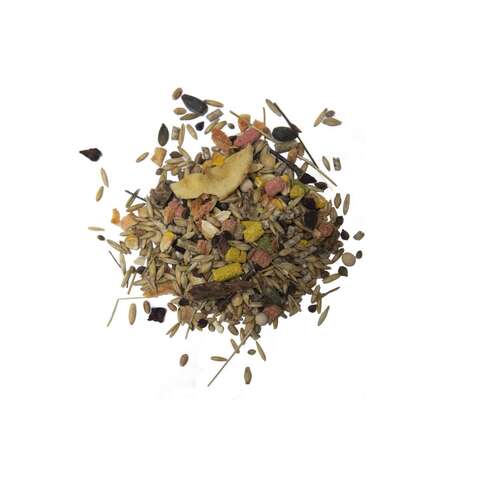 Состав: пшеница, ячмень, овес, пшеничные отруби, люцерновая мука, кукуруза, семечка подсолнечника, гречиха, горох, плоды рожкового дерева, семена тыквы, семена конопли и льна, изюм, морковь, банан, дегидрированное говяжье легкое, свекла, меласса, кукурузная мука, мел, лизин, березовые ветви, сушеные луговые травы, энтеросорбент природного происхождения.