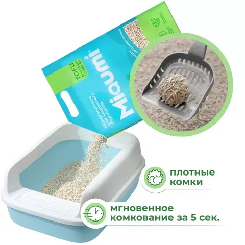 Отличительной особенностью наполнителя Miaumi TOFU Natural Unscented являются премиальные гранулы диаметром 2 мм, обладающие способностью образовывать сверхпрочные комки при соприкосновении с жидкостью, которые впоследствии легко утилизируются в унитаз.