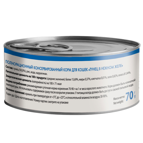 Мнямс консервы для кошек Тунец в нежном желе 70 гКонсервы для кошек «Мнямс» состоят исключительно из отборных натуральных компонентов и не содержат сою, искусственные красители и усилители вкуса.В процессе производства консервов используется только отборное парное и охлажденное, а не замороженное сырье.Именно поэтому данный продукт производится в месте вылова тунца – Тайланде.